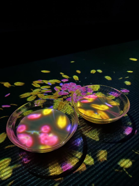 꽃과 빛의 숲 (Forest of Flowers and Lights) 벽과 바닥이 온통 화려한 꽃으로 덮여 있고, 움직임에 따라 색깔이 변하는 마법 같은 공간이에요. 걸을 때마다 꽃이 피어나고 사라지는 모습을 보면 정말 신비로워요.