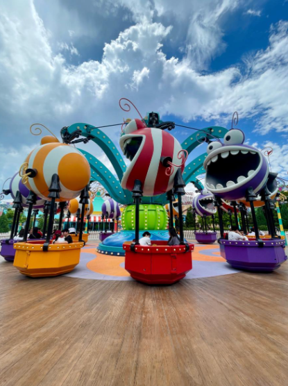 여기서 세서미 스트리트 라이드도 탈 수 있는데, 비교적 잔잔해서 쉬어가기 좋아요. SF 시티는 개인적으로 제일 재밌었던 구역이에요. 미래적인 분위기에 놀이기구도 가장 스릴 있는 게 많아요. 특히 배틀스타 갈락티카 롤러코스터는 진짜 강력해요. 세계에서 가장 높은 듀얼 롤러코스터 중 하나라는데, 타보면 왜 그런지 바로 알겠더라고요.
