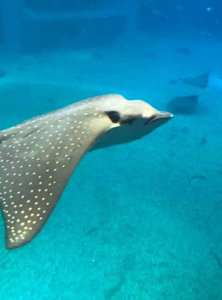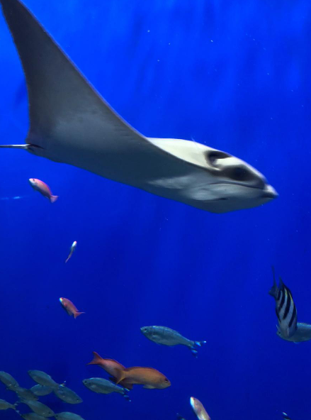 태평양 대수조는 가이유칸의 중심이 되는 수조로, 모든 관람객들이 가장 먼저 찾는 장소예요. 고래상어와 가오리가 유유히 헤엄치는 모습은 정말 장관이었어요. 고래상어는 워낙 거대한 생물이라 가까이서 보면 그 위용에 감탄하게 되는데, 이 수조가 워낙 커서 물고기들이 스트레스를 받지 않도록 설계되었다고 하더라고요. 이곳에서는 의자에 앉아 고래상어와 수조의 다른 해양 생물들이 헤엄치는 모습을 여유롭게 감상할 수 있어요. 주변이 조용하고 평화로운 분위기라, 여행 중 잠깐 쉬어가기도 좋았답니다.