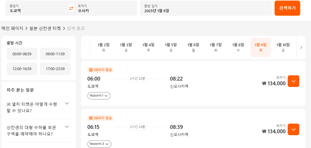 오사카에서 도쿄 신칸센 시간표와 좌석별 가격 그리고 바로 예약까지 가능합니다!