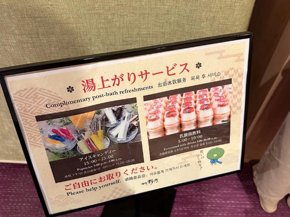 특히, 노천탕에서는 고즈넉한 분위기 속에서 여유롭게 온천을 즐길 수 있었어요. 온천 내부에는 샴푸, 컨디셔너, 바디워시, 클렌징 오일, 바디로션 등의 다양한 어메니티가 구비되어 있어서 따로 준비할 필요가 없었어요. 이용 시간은 오후 3시부터 익일 오전 10시까지라서 새벽에도 이용할 수 있어 일정이 늦어도 온천을 충분히 즐길 수 있었어요. 또한, 온천 옆에는 무료로 이용할 수 있는 안마 의자도 있어서 온천 후에 여유롭게 쉬기 좋았어요.